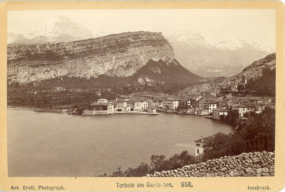 Torbole am Gardasee, Albuminabzug auf Karton (Kabinett-Format) (Vorderseite), um 1890 Fotograf: Anton Gratl, Tiroler Landesmuseum Ferdinandeum, Historische Sammlungen, CC BY 4.0
