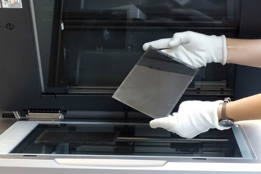 Die Glasplatten werden zum Interreg-Projektpartner Stadtgemeinde Bruneck gebracht und dort gescannt. Auch hier ist vorsichtiges Hantieren angesagt.