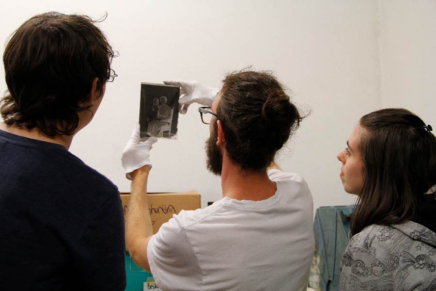 Bevor wir uns näher mit dem Inhalt der Glasplatten befassen, werden diese zunächst vorsichtig gereinigt. Dies machen wir, um das Bild ohne Kratzer und andere Schäden bewahren zu können. Mit weichen Pinseln unterschiedlicher Größe werden beide Seiten vorsichtig von Staub und Schmutz befreit.